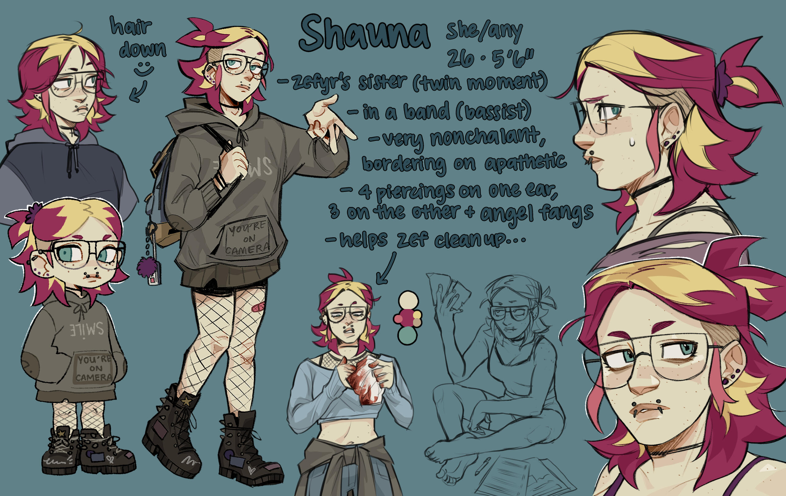 Heya! I'm Xav ('shmeemin'), a digital illustrator and character designer who works with bright colors, dynamic compositions, and bringing stories to life. I graduated from Milwaukee Institute of Art & Design with a major in Illustration and a minor in Digital Media Production.When it comes to creating, music plays a big part in influencing me and my work. Aside from plenty of scribbling, I enjoy binging shows with buddies, dyeing my hair excessively, and contemplating deep philosophical questions with my rabbit, Pip.